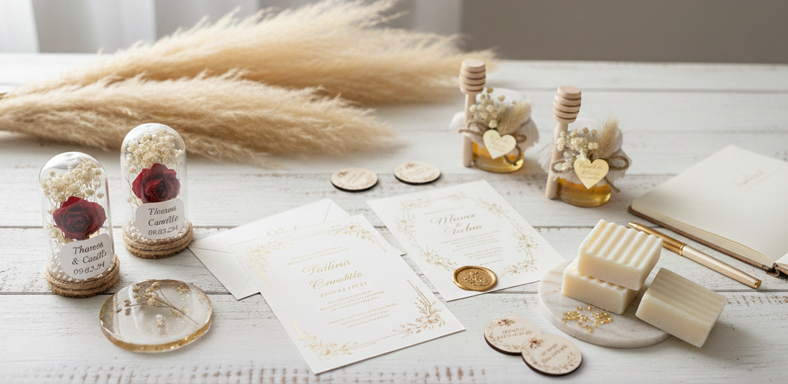 Avec ma future épouse, nous sommes très satisfaits de notre commande (dragées, magnets et livre d’or). Communication rapide, prestataire réactive et livraison dans les délais prévus - Yoan K.