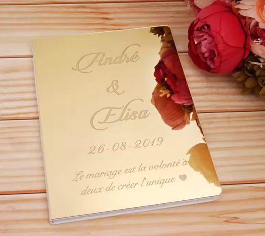 Livre d’Or de Mariage Signature – Couverture Miroir Acrylique Personnalisée