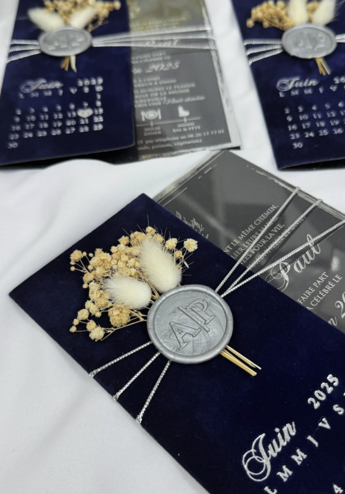 Faire-part "L'Écrin de Bleu Nuit" - Transparent & Sceau de Cire Personnalisé