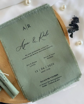 Osez l’originalité avec cette carte d’invitation en tissu, à la fois raffinée et intemporelle. Confectionnée dans un textile délicat aux finissions effilées, elle apporte une dimension sensorielle et précieuse à votre annonce.